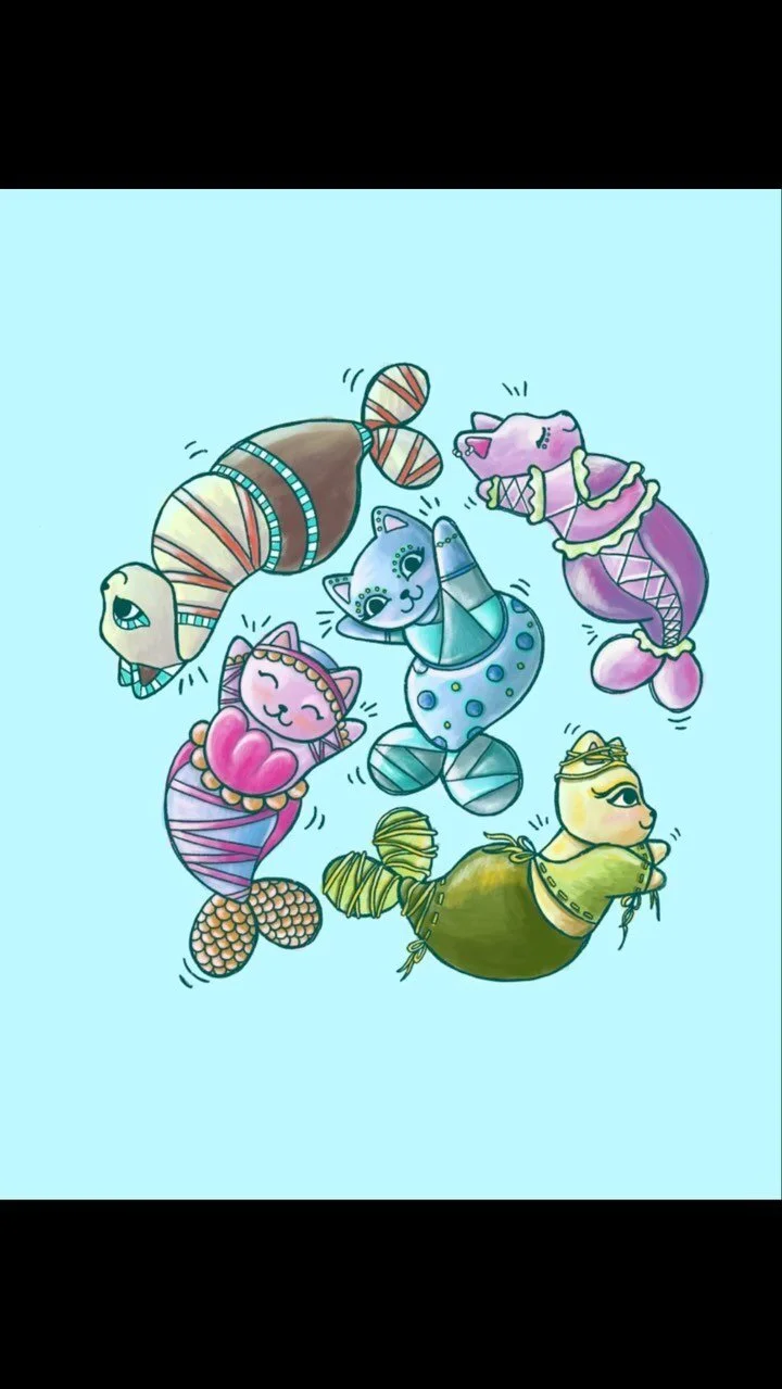 On this website you will find some of my digital work, my traditional art portfolio, my store and, my brand new illustrated cat blog.